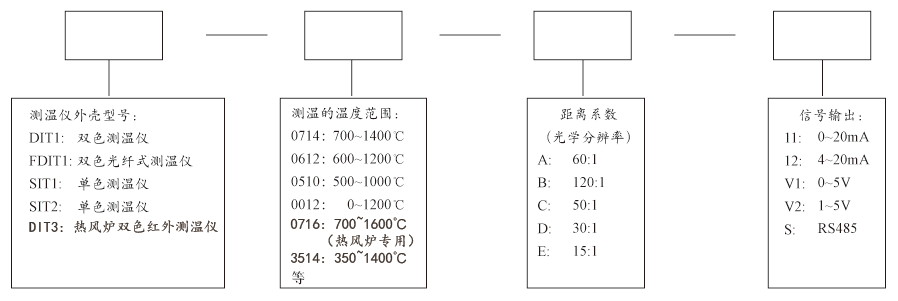 測溫范圍:350~1400℃;600~1400℃;600~1600℃等