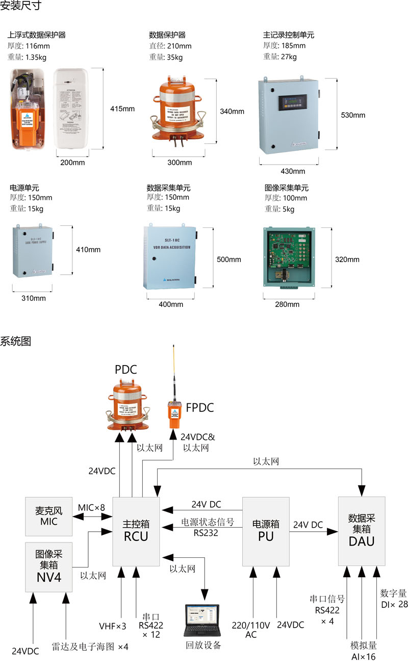 船载航行数据记录仪(VDR) 型号:SLT-18C 型式认可证书:CCS, LR, EU-MED, ABS Product description: 船载航行数据记录仪是根据国际海事组织(IMO)在SOLAS公约新增第V/20.2条款,而研制的一种用于记录和保存船舶航行过程中重要信息参数的智能设备。它完全符合IEC61996国际标准。 产品满足海安协会 MSC.(333)90 最新决议要求,该决议将在2014年7月1日起生效。